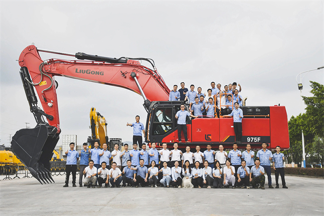 首台柳工975F欧洲版大型挖掘机产品发运英国